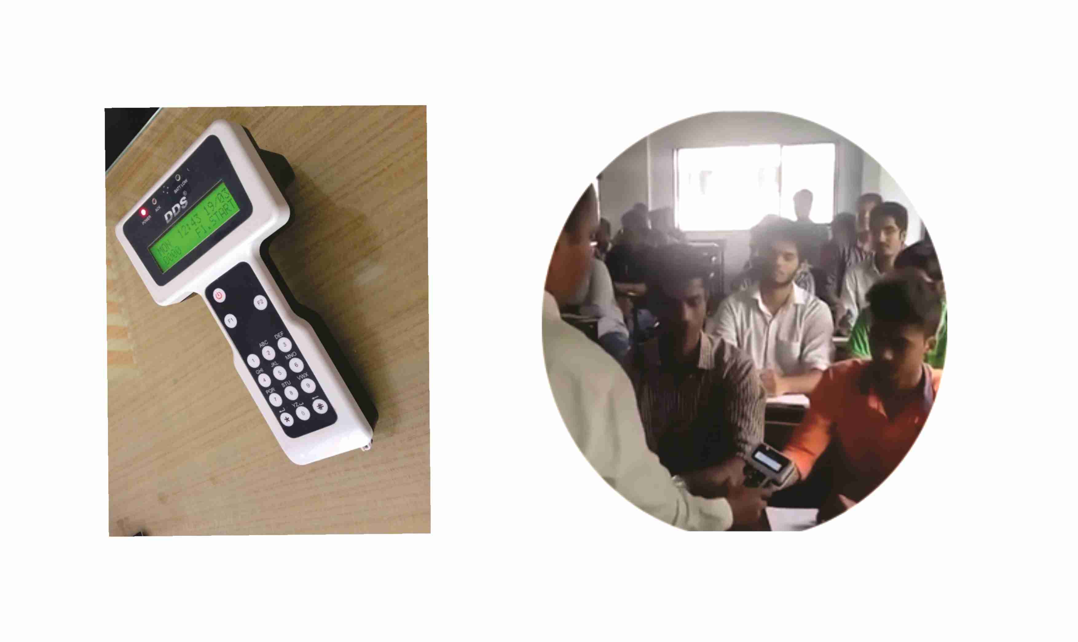 This is a special RFID Hand Held Attendance Device just like a mobile which is movable and is specially designed to capture every lectureattendance of students and teachers. Teachers and students have to touch their ID card to the hand Held Reader and attendance is recorded.